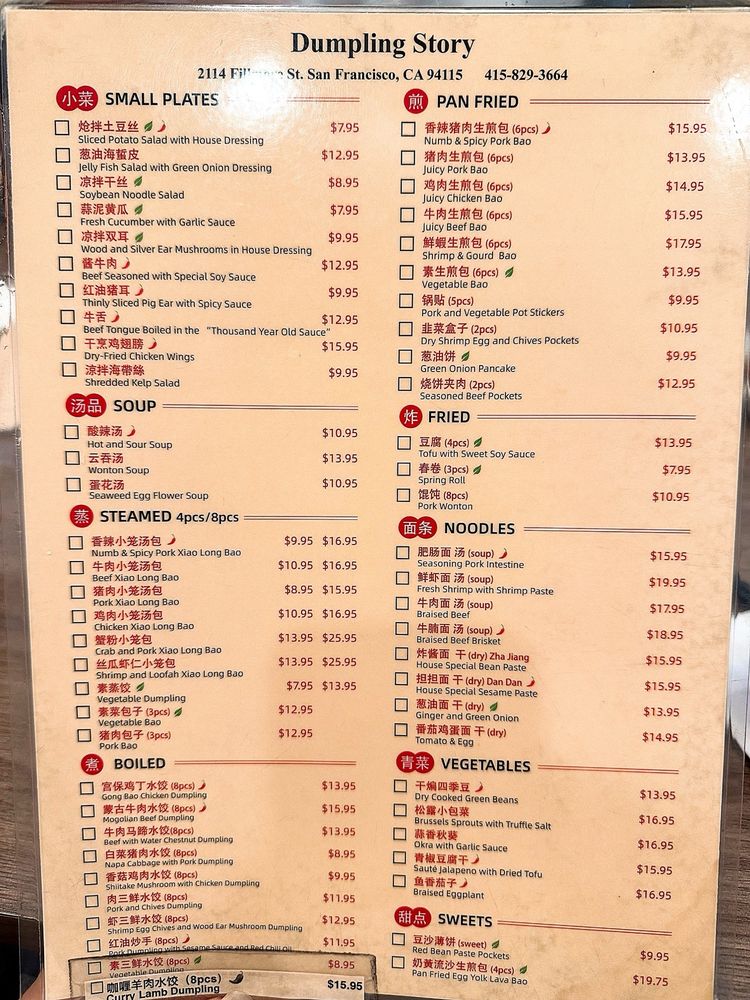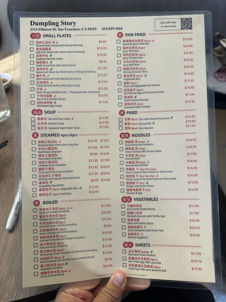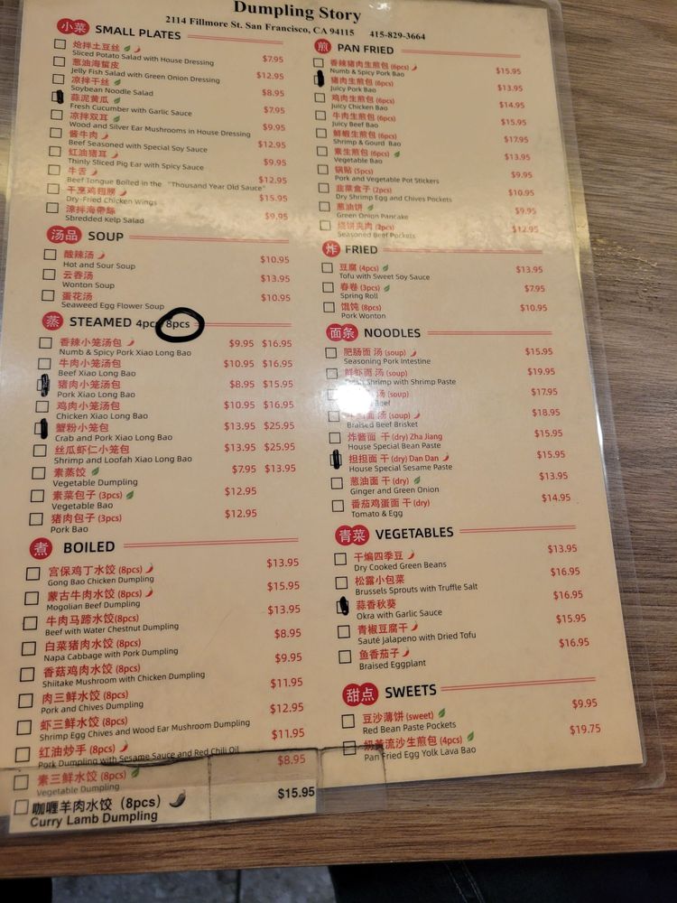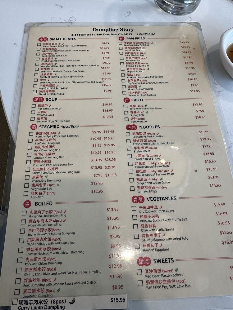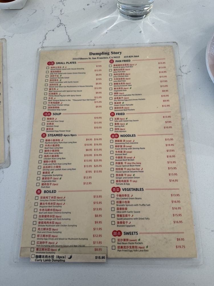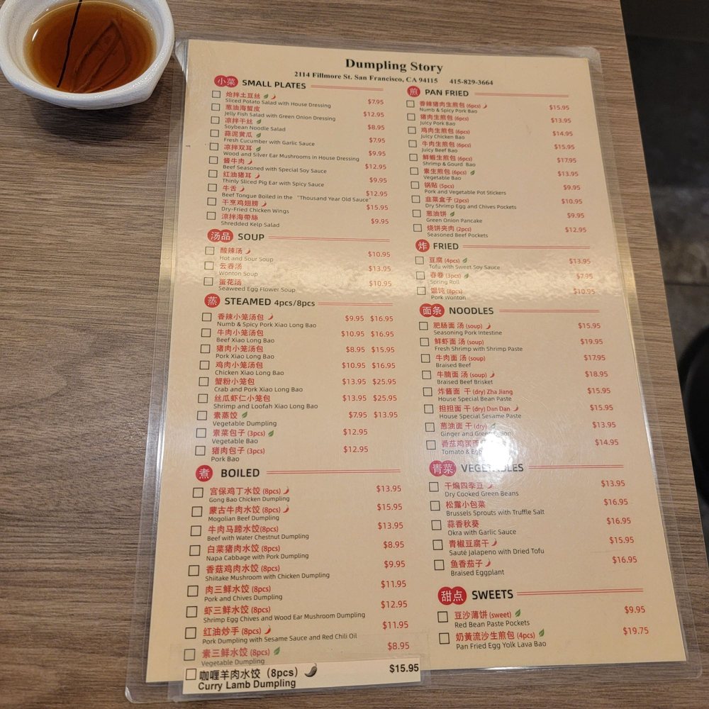 "Dumpling Story" at 2114 Fillmore St in San Francisco offers a variety of delicious dumplings with options for delivery, takeout, reservations, and vegan choices. Customers rave about the flavorful soup-filled dumplings, veggie dumplings, and tasty spring rolls. The sesame chili oil dumplings and crab pork XLB are highly recommended. The restaurant has a trendy, casual atmosphere with attentive staff and a quick service. The outdoor seating is a plus, especially on sunny days. While some dishes like the steamed beef dumplings received mixed reviews, overall, customers praise the food quality and enjoyable dining experience. If you're a dumpling lover looking for a new favorite spot, Dumpling Story is worth a visit.